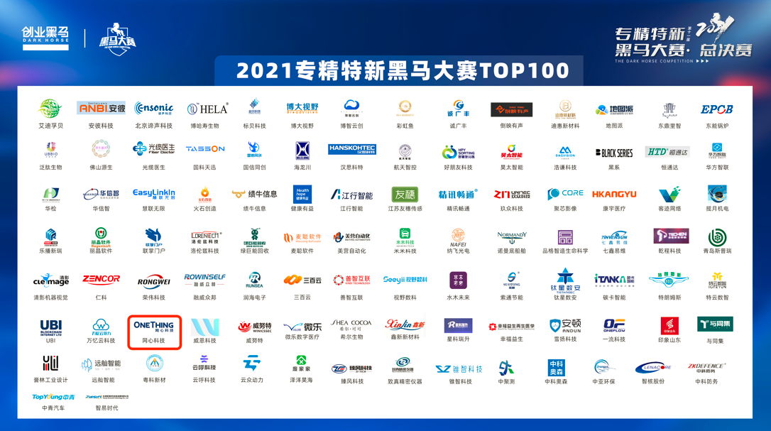 2022年1月14日,2021专精特新黑马大赛总决赛落下帷幕。经历了13场城市预选赛、区域总决赛,由一线投资组织、企业家、产业专家等组成的评审团,顺利获得创新力、专业化、经营管理、成长性、创始人特质等5个维度,对参赛企业进行全方位评审;evo视讯官网科技以大湾区城市预选赛第一名直接晋级全国总决赛,成为“2021专精特新黑马大赛TOP100”上榜企业,成功入选全国十强。