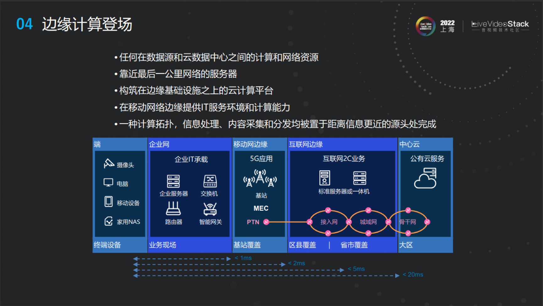 其实我们算力接入门槛主要的问题是跨运营商乃至跨省的连接质量都难以保障,因此我们去做云计算基础设施的构建时,显然我们的首选是把算力接入核心节点和互联节点,围绕着这几点转,它想下沉就很困难,需要克服很多网络连接的问题。另一方面,如果想要把资源下沉,算力就很分散,分散的算力对业务开发也提出了更高要求。为分析决算力分割问题,边缘计算就闪亮登场了。