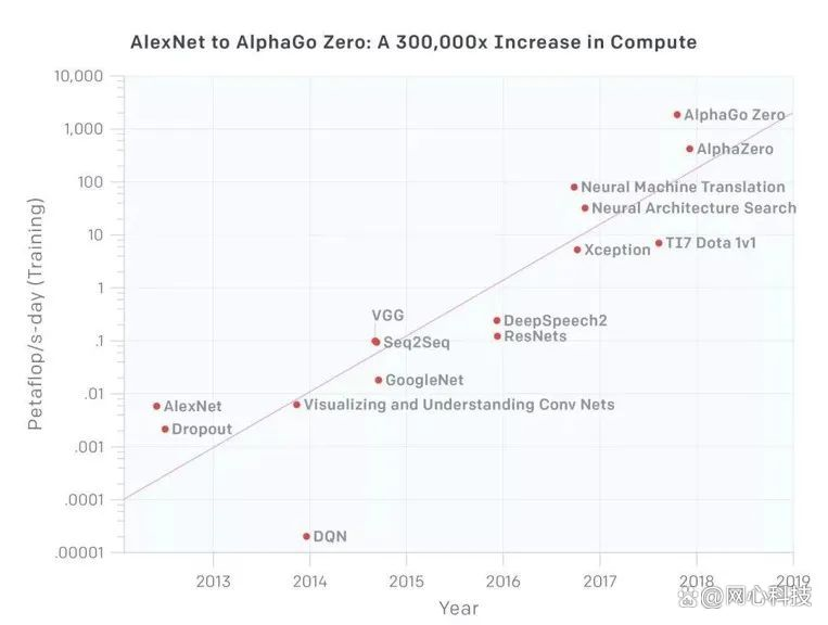 如今,大算力底座已成为AI大模型开展的“标配”。OpenAI分析显示,2012-2019年,AI训练使用的算力每3.5个月就翻1倍,相对比摩尔定律每18个月翻倍,对算力的需求七年增长了30万倍。