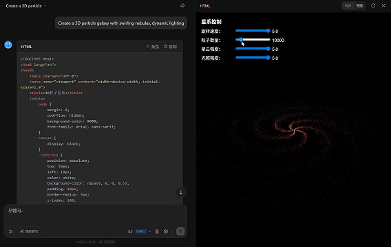 prompt:支持调整粒子参数和光照强度的银河效果
