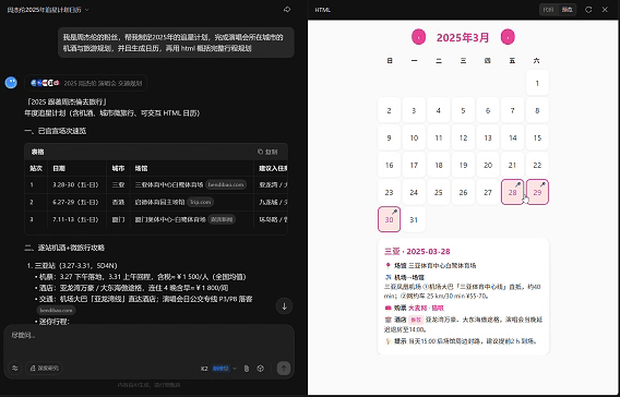 Kimi K2 已具备稳定的复杂指令解析能力,可以帮你完成复杂任务或自动化编码。比如,你可以让它制定一份详细的追星计划:
