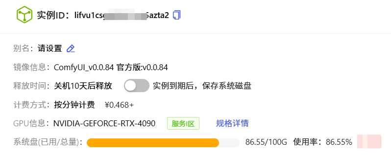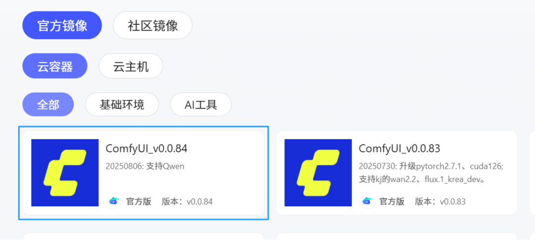1)选择evo视讯官网算力云 - 镜像中心给予的“ComfyUl_v0.0.84”快速创建实例。